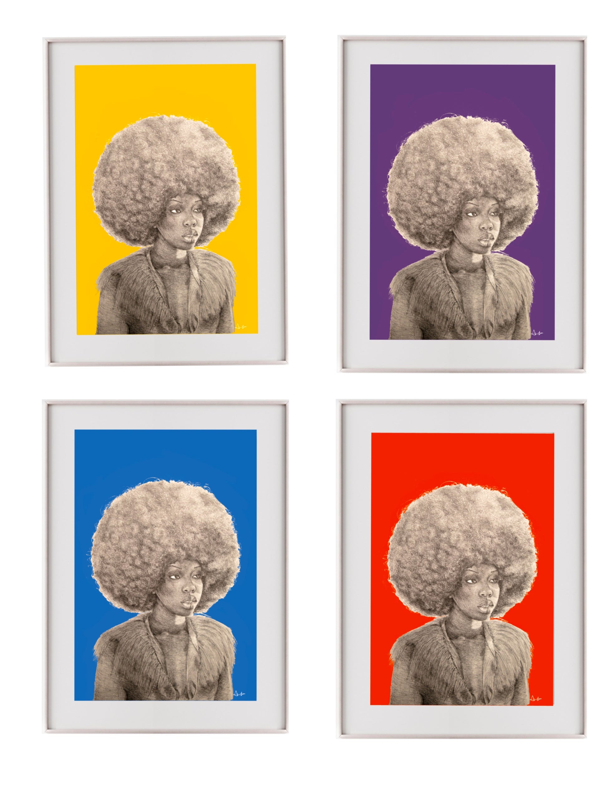 This bold and captivating series is retro, modern, and futuristic all at the same time. You'll get a different feeling each time you look at her. They're beautiful a part, but spectacular as a series of four.